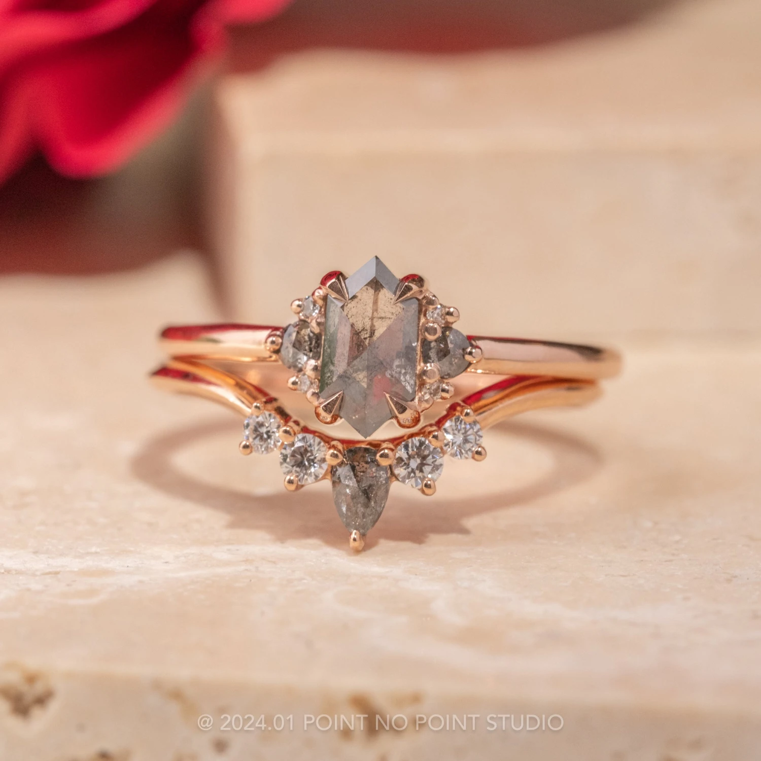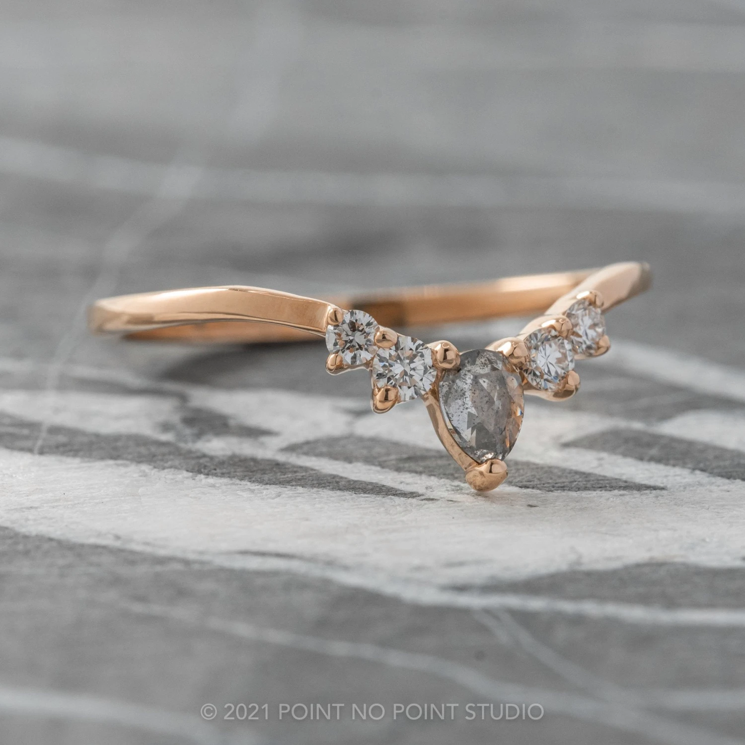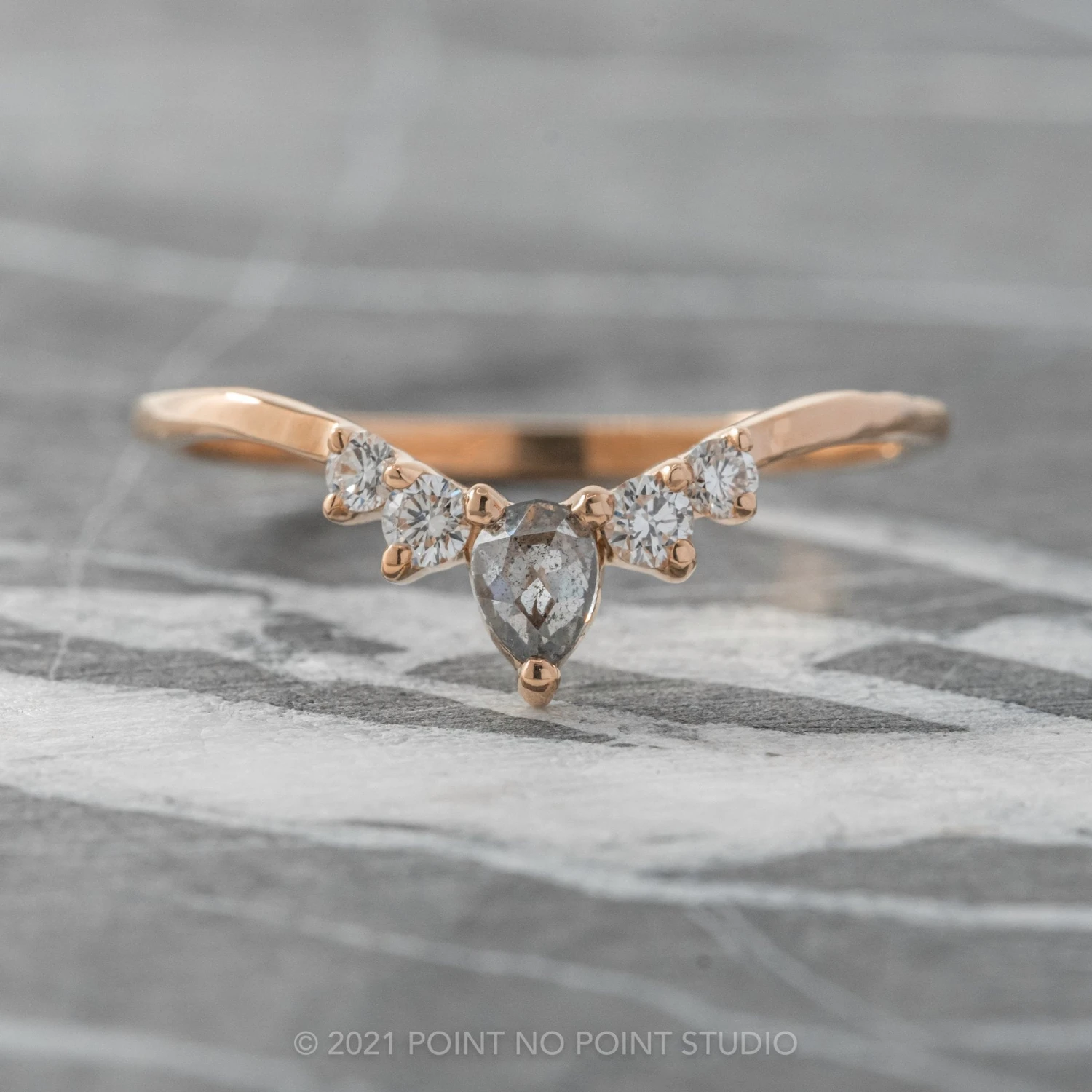 Salt and Pepper Rose Cut Pear Diamond Wedding Band