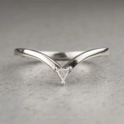 Enhance your engagement ring with the beautiful Platinum Vivian wedding band. At the tip of the V there is a .04ct white triangle diamond. This wedding band can be worn alone, stacked in multiples, or to match any number of engagement rings!