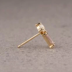 Timeless and chic, these unique stud earrings feature a stunning natural round white opal, accompanied by a natural faceted pink tourmaline baguette. These stud earrings are easy to wear and compliment existing jewelry that you wear everyday! Measuring 10.26mm x 4.7mm, these studs can stand alone or be paired up with other jewelry to elevate your look!
