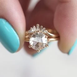 The entire Wren ring is made of 14k yellow gold; the settings for the stones were made to be low profile and comfortable for everyday wear.Â